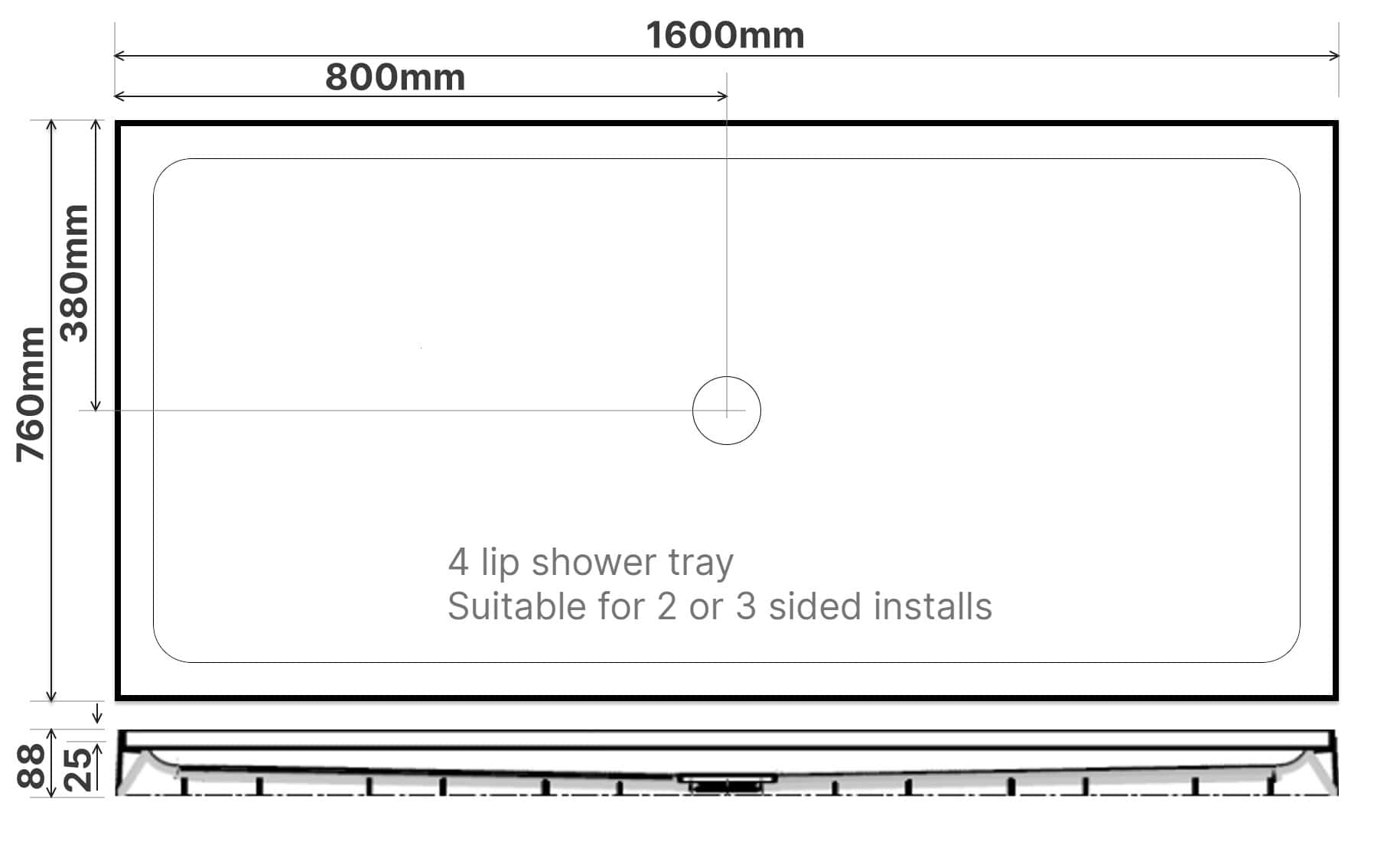 - Center waste with 4 lip upstands