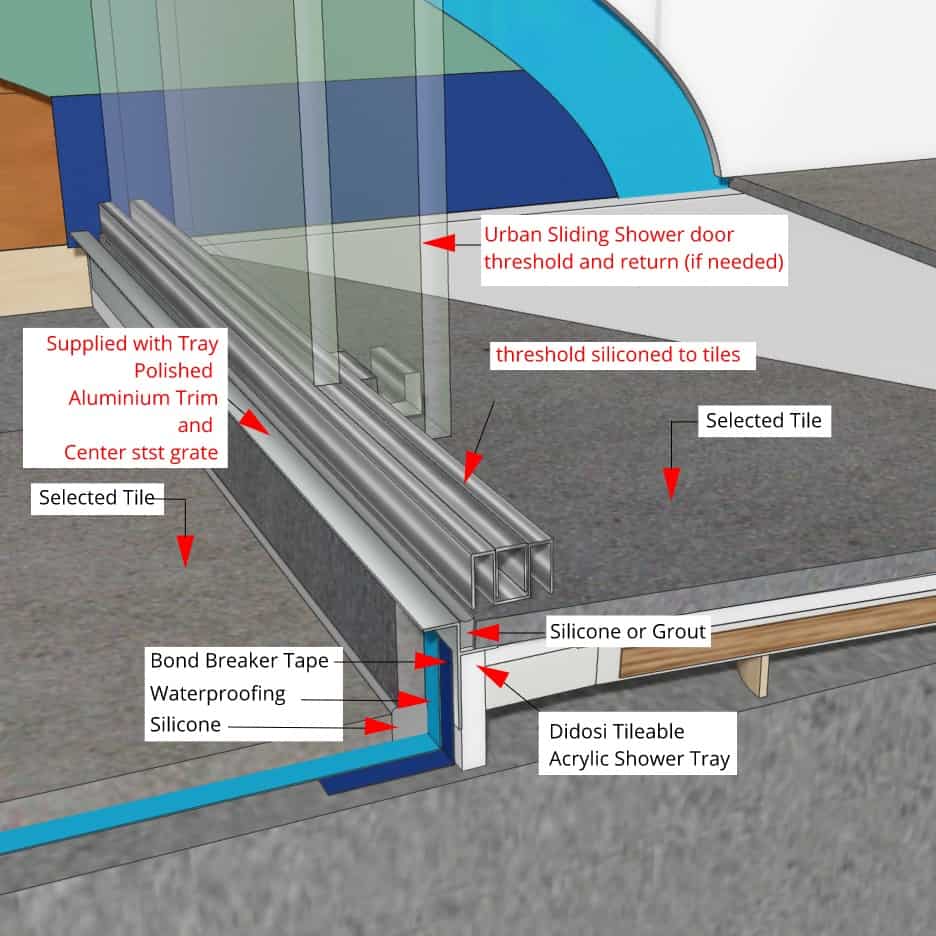 Getting a good quality tileable shower trays which will withstand the rigors of daily use and house movement without causing heartache in the years to come has been hard to find. We’ve now combined our considerable experience with acrylic shower trays to develop a 1 piece tileable shower tray with built in fall and a low step. This tray also enables the use of a std 90mm easyclean trap which helps to keep both the purchase cost and the install cost down. The Tray also reduces the time to install a Tiled shower tray and does not require waterproofing on the bathroom floor. Another advantage is this design enables you to place this on an existing polished wooden floor or a 2nd floor of an existing house without the normal concerns of house movement causing leaking.